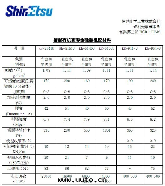 信(xìn)越矽胶(jiāo)原材料KE-5151-U及(jí)KE-5141-U是(shì)日(rì)本(běn)信(xìn)越生(shēng)産的超高(gāo)寿命矽胶(jiāo),按键寿命可(kě)达到(dào)2000万(wàn)次(cì),可(kě)用(yòng)于(yú)高(gāo)要(yào)求的按键、密封(fēng)圈,客戶鑒证:微软(ruǎn)公(gōng)司高(gāo)要(yào)求的遊戲手(shǒu)柄按键及(jí)其(qí)他(tā)要(yào)求高(gāo)寿命的密封(fēng)圈