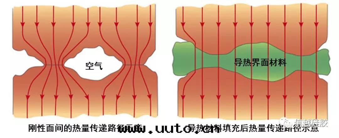 受限于(yú)機(jī)械加工精度(dù),剛性(xìng)接觸面(miàn)間(jiān)会(huì)存有极细(xì)微的凹凸不平的空(kōng)隙。图(tú)4左(zuǒ)图(tú)示意(yì)了(le)剛性(xìng)接觸面(miàn)間(jiān)热(rè)量(liàng)传遞的路(lù)徑。衆所(suǒ)周知,空(kōng)气(qì)導热(rè)系(xì)數极低(dī)(25℃时(shí),空(kōng)气(qì)導热(rè)系(xì)數僅为(wèi)0.026W/m.K),接觸面(miàn)間(jiān)的空(kōng)隙会(huì)使得热(rè)量(liàng)的传遞變(biàn)得困難。在(zài)界面(miàn)間(jiān)填充高(gāo)導热(rè)柔性(xìng)材料(導热(rè)系(xì)數一(yī)般在(zài)1.0 W/m.K ~ 6.0 W/m.K之(zhī)間(jiān))是(shì)降低(dī)接觸热(rè)阻的有效方(fāng)法(fǎ)。特殊场(chǎng)景中,導热(rè)界面(miàn)材料它(tā)还需要(yào)同时(shí)具備絕緣、吸波(bō)功能(néng)。为(wèi)了(le)保证热(rè)量(liàng)传遞的通(tòng)暢性(xìng),在(zài)電(diàn)池包(bāo)中,電(diàn)池和(hé)冷(lěng)闆之(zhī)間(jiān)同樣(yàng)需要(yào)貼附導热(rè)界面(miàn)材料。然而(ér),汽車動(dòng)力電(diàn)池包(bāo)中的導热(rè)界面(miàn)材料,由(yóu)于(yú)運用(yòng)场(chǎng)景和(hé)面(miàn)臨的問(wèn)題(tí)與(yǔ)常規電(diàn)子産品差异(yì)很大,其(qí)要(yào)求有很強(qiáng)的特殊性(xìng)。