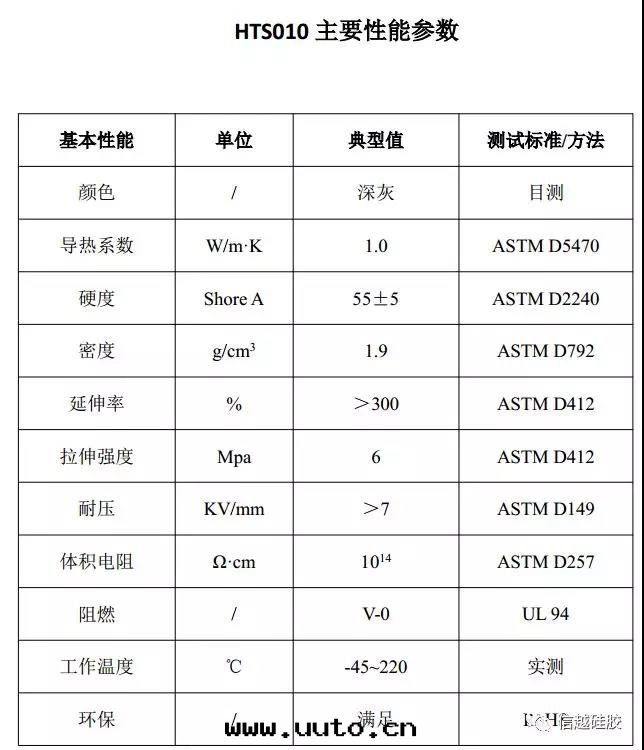 HTS010是(shì)一(yī)款专門(mén)为(wèi)動(dòng)力汽車電(diàn)池包(bāo)開(kāi)發(fà)的導热(rè)、阻燃、絕緣衬垫(diàn),我(wǒ)们(men)先(xiān)来看(kàn)它(tā)的性(xìng)能(néng)簡表(biǎo):
