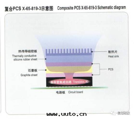 複合CPS X-65-819-3可(kě)用(yòng)于(yú)散(sàn)热(rè)用(yòng)途,其(qí)具有4层(céng)結構:2层(céng)相轉(zhuǎn)變(biàn)(PCS)层(céng),1层(céng)石(dàn)墨(mò)层(céng),1层(céng)热(rè)传導矽胶(jiāo)片(piàn)层(céng)。中央處(chù)理(lǐ)器(CPU)或(huò)其(qí)他(tā)電(diàn)子元(yuán)件(jiàn)所(suǒ)産生(shēng)的热(rè)量(liàng)可(kě)使此類(lèi)薄片(piàn)由(yóu)固态轉(zhuǎn)變(biàn)为(wèi)液态,从而(ér)降低(dī)了(le)热(rè)阻并具有的優越的散(sàn)热(rè)性(xìng)能(néng)。